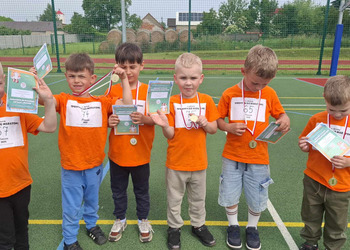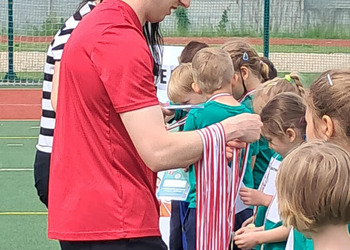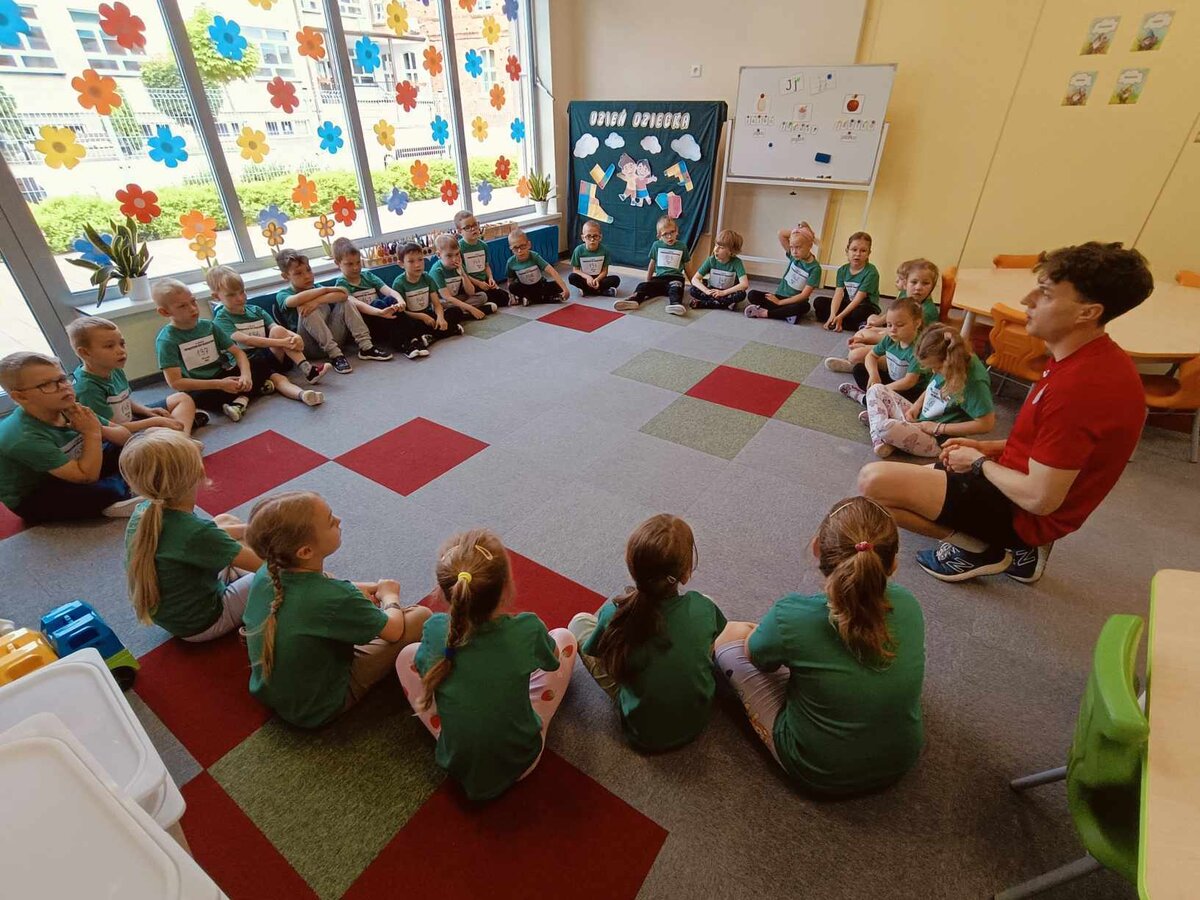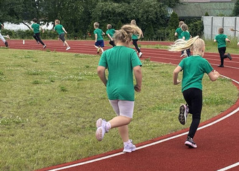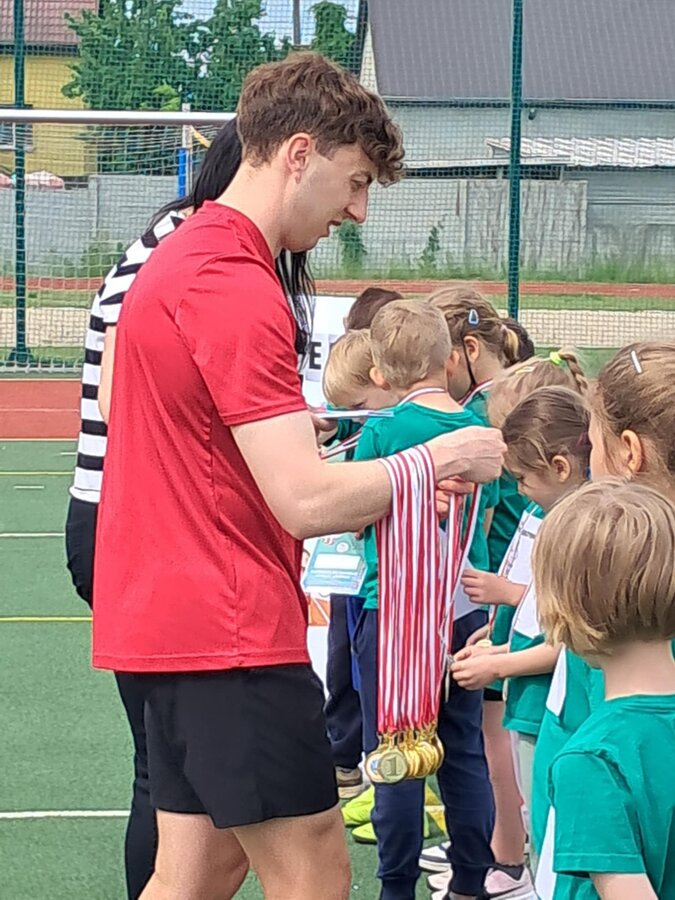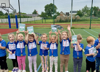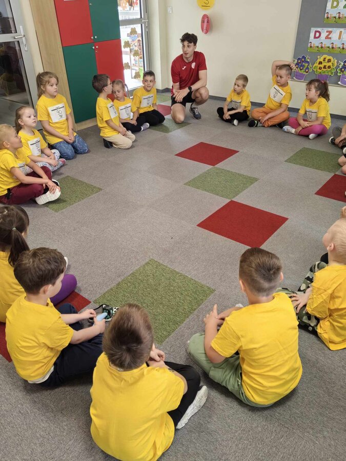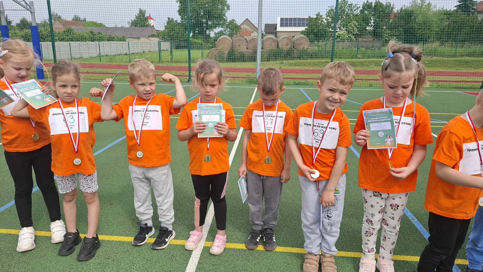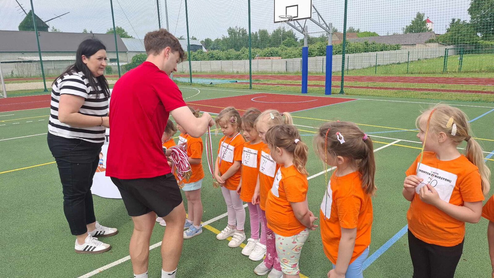 2 czerwca dzieci z Przedszkola Samorządowego w Jerce wzięły udział w XI Ogólnopolskim Maratonie Przedszkolaków pod hasłem „Sprintem do maratonu”. Celem tego wydarzenia jest promowanie zdrowego stylu życia i aktywnego spędzania czasu, popularyzowanie biegów wśród dzieci oraz kształtowanie u przedszkolaków nawyku podejmowania aktywności fizycznej. Akcja ta zachęca dzieci do zabawy i ruchu na świeżym powietrzu, a także kładzie nacisk na edukację zdrowotną już od najmłodszych lat. Od samego rana w przedszkolu gościliśmy trenera klubu Promień Krzywiń Pana Adriana Gościniaka, który rozmawiał z dziećmi o sporcie i zdrowym odżywianiu. Zachęcał wszystkich do aktywności fizycznej. Następnie wszystkie dzieci otrzymały numery startowe i wspólnie udaliśmy się na szkolne boisko, gdzie pan Adrian przeprowadził dla wszystkich rozgrzewkę. Kolejnym punktem programu był bieg wyznaczoną trasą. Wszystkie przedszkolaki bez trudu przebiegły wyznaczony dystans. Na zakończenie każde dziecko otrzymało medal i dyplom. Warto podkreślić, że wszyscy byli zwycięzcami, nie liczyło się zdobyte miejsce, lecz pokonanie wyznaczonego dystansu w miłej atmosferze.