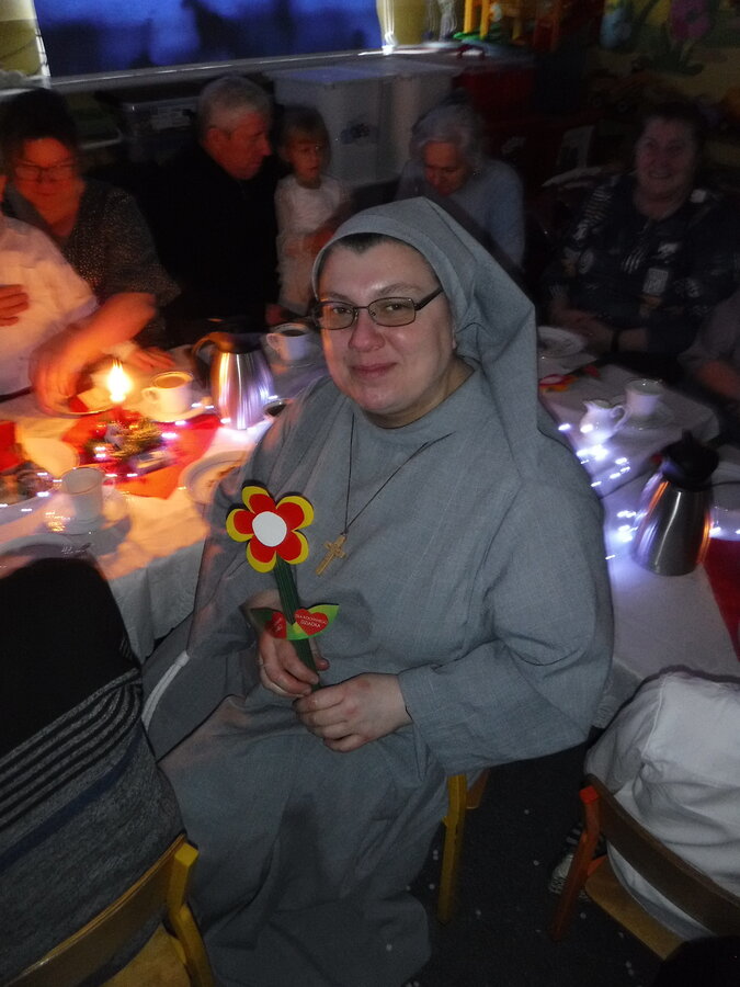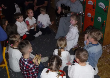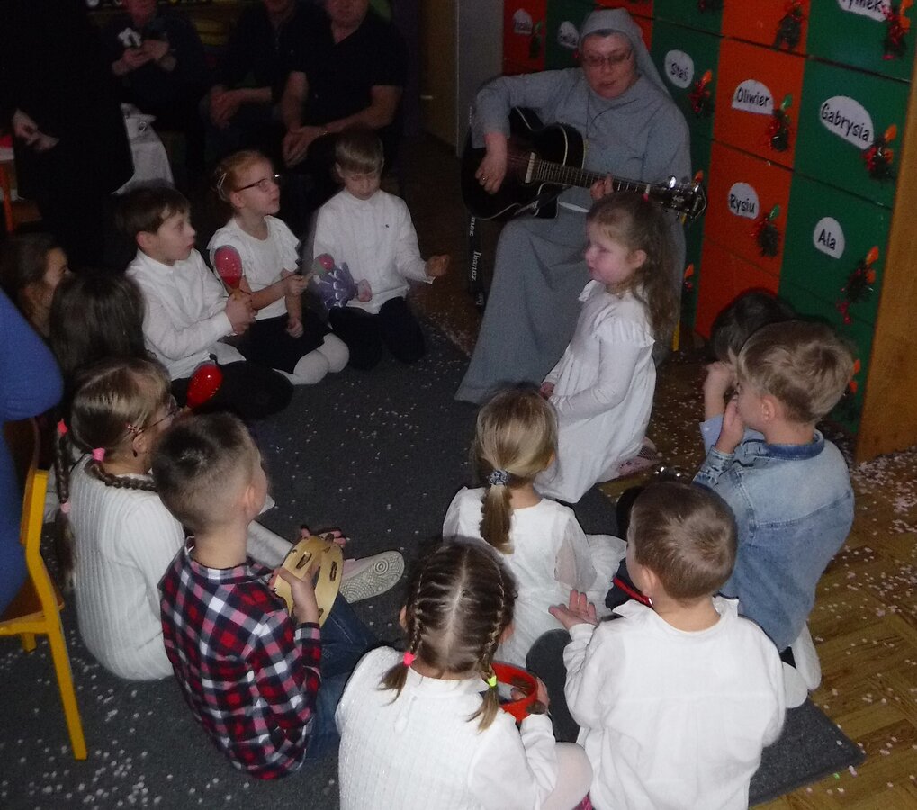 Na koniec uroczystości wszyscy śpiewali tradycyjne polskie kolędy przy akompaniamencie gitary siostry Edyty i dzieci, które grały na instrumentach perkusyjnych.