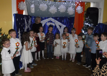 W dniu 9 stycznia w przedszkolu powitaliśmy dziadków naszych przedszkolaków, panie z Klubu Seniora i siostrę Edytę. Dzieci tradycyjnie przedstawiły Jasełkę. Po krótkiej przerwie zaśpiewały piosenkę dla Babci i Dziadka, złożyły życzenia i wręczyły kwiatki. Po czym przyszedł czas na wypicie kawy i zjedzenie przygotowanych przez rodziców ciast.