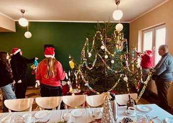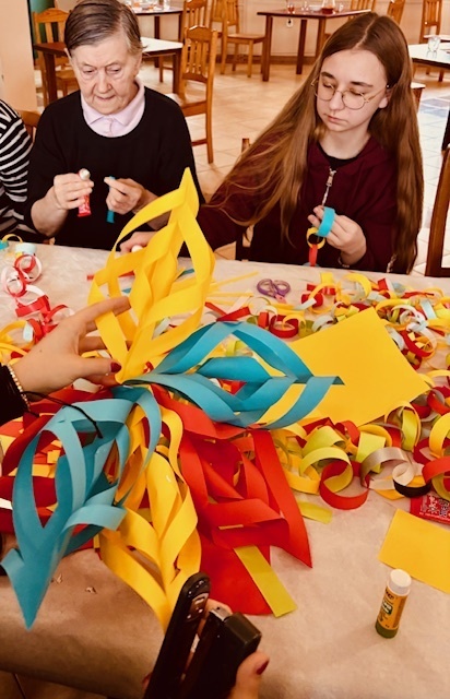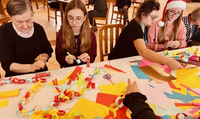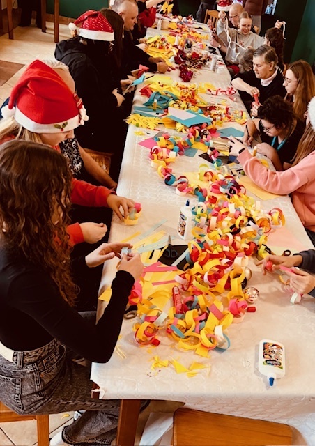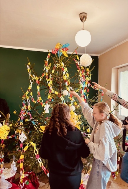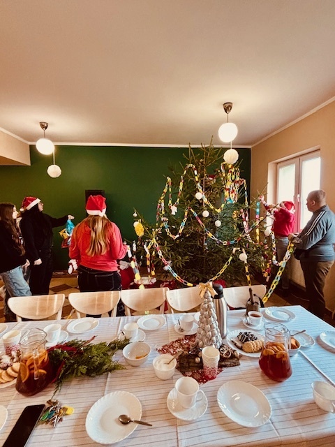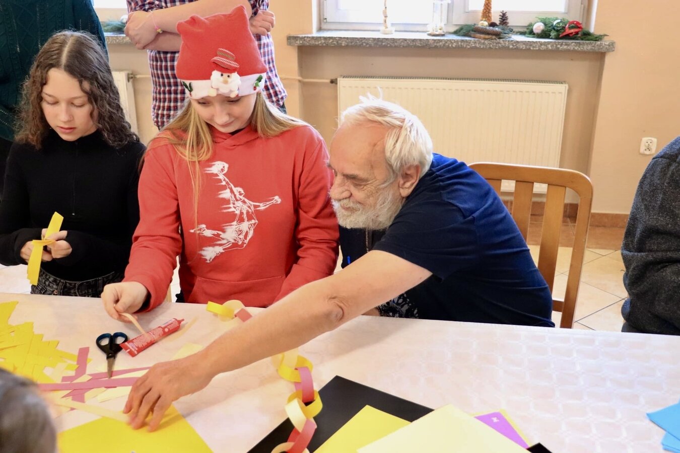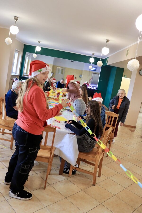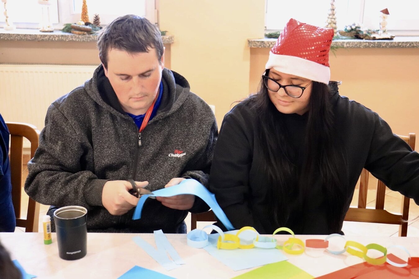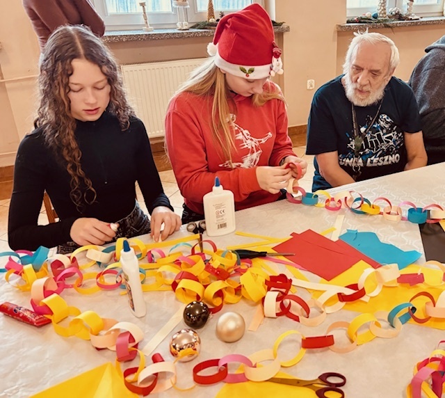 Spotkanie przebiegło w ciepłej, świątecznej atmosferze. Wspólnie wykonywano ozdoby świąteczne i ubrano choinkę, co stało się okazją do integracji i radosnego spędzenia czasu. Podopieczni DPS z wdzięcznością przyjęli podarunki i wyrazy pamięci, a obecność młodzieży wniosła wiele uśmiechu i wzruszeń.